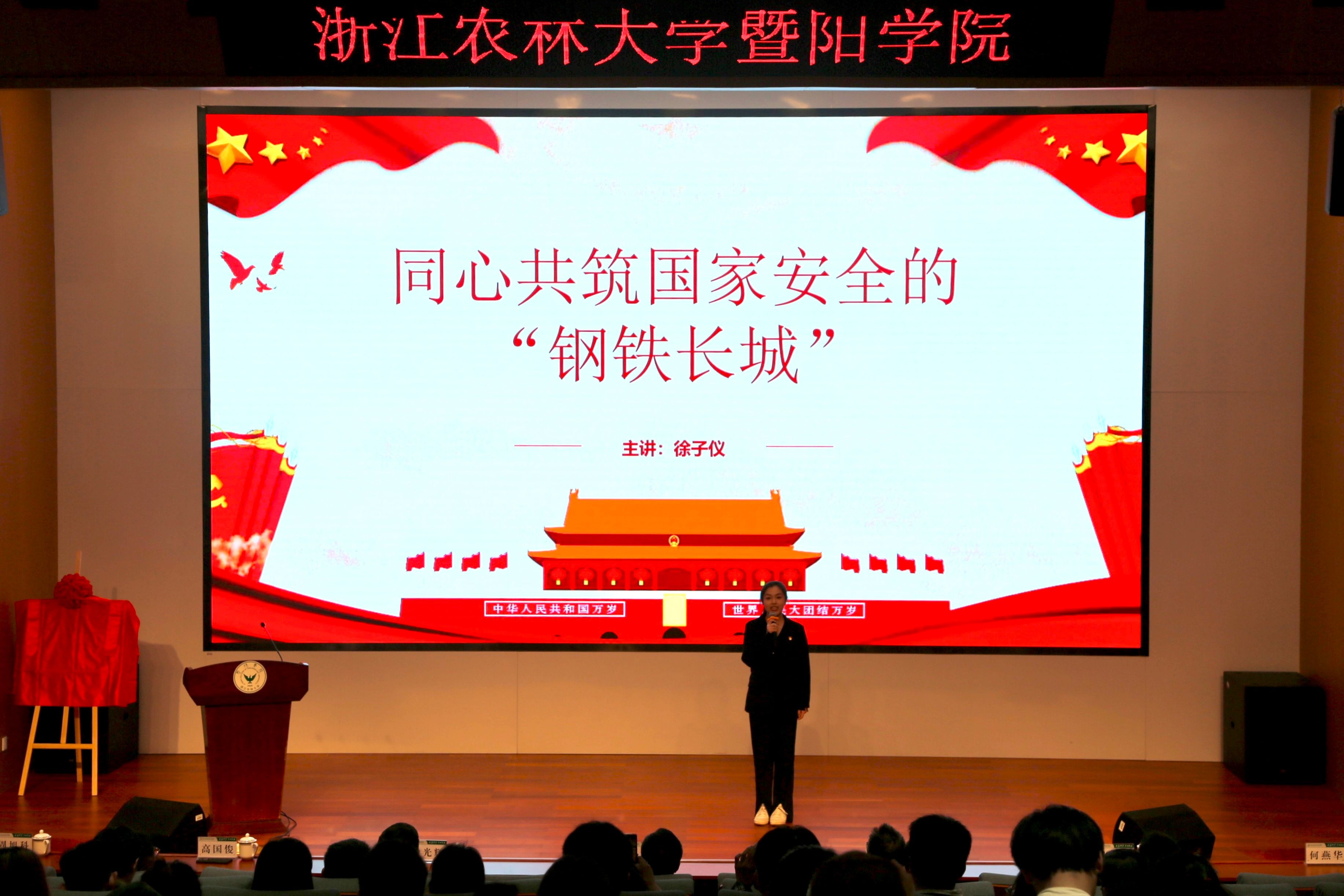 在总体国家安全观提出10周年、第九个全民国家安全教育日来临之际,4月12日,学院安全育人文化节暨国家安全教育主题活动启动仪式在智能报告厅顺利举行。学院院长徐光辉、党委副书记高国俊,绍兴市国安局,诸暨市公安局、教体局领导出席本次仪式。学院相关职能部门、师生代表和警务站人员参加活动。