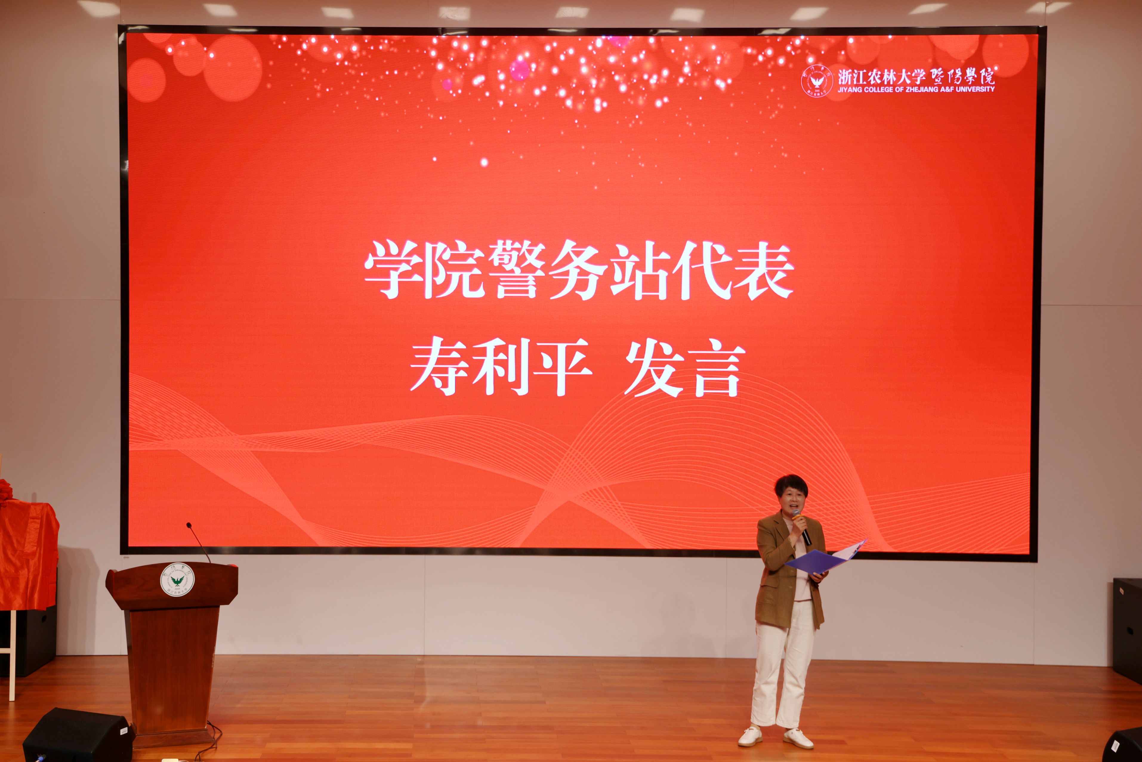 绍兴市国安干部和学院阳光宣讲团成员分别作安全教育主题讲座和宣讲。学院警务站常驻人员代表发言。