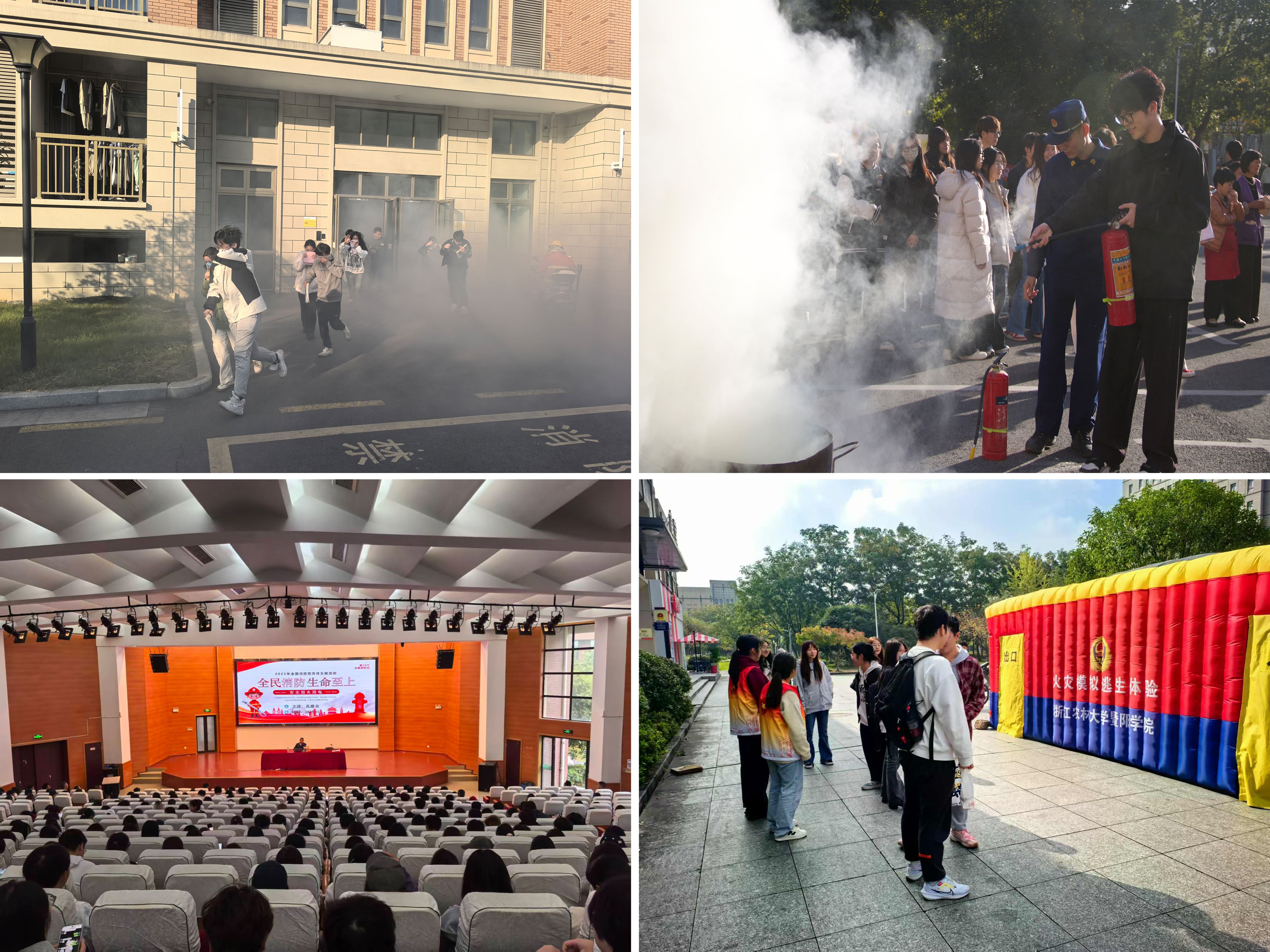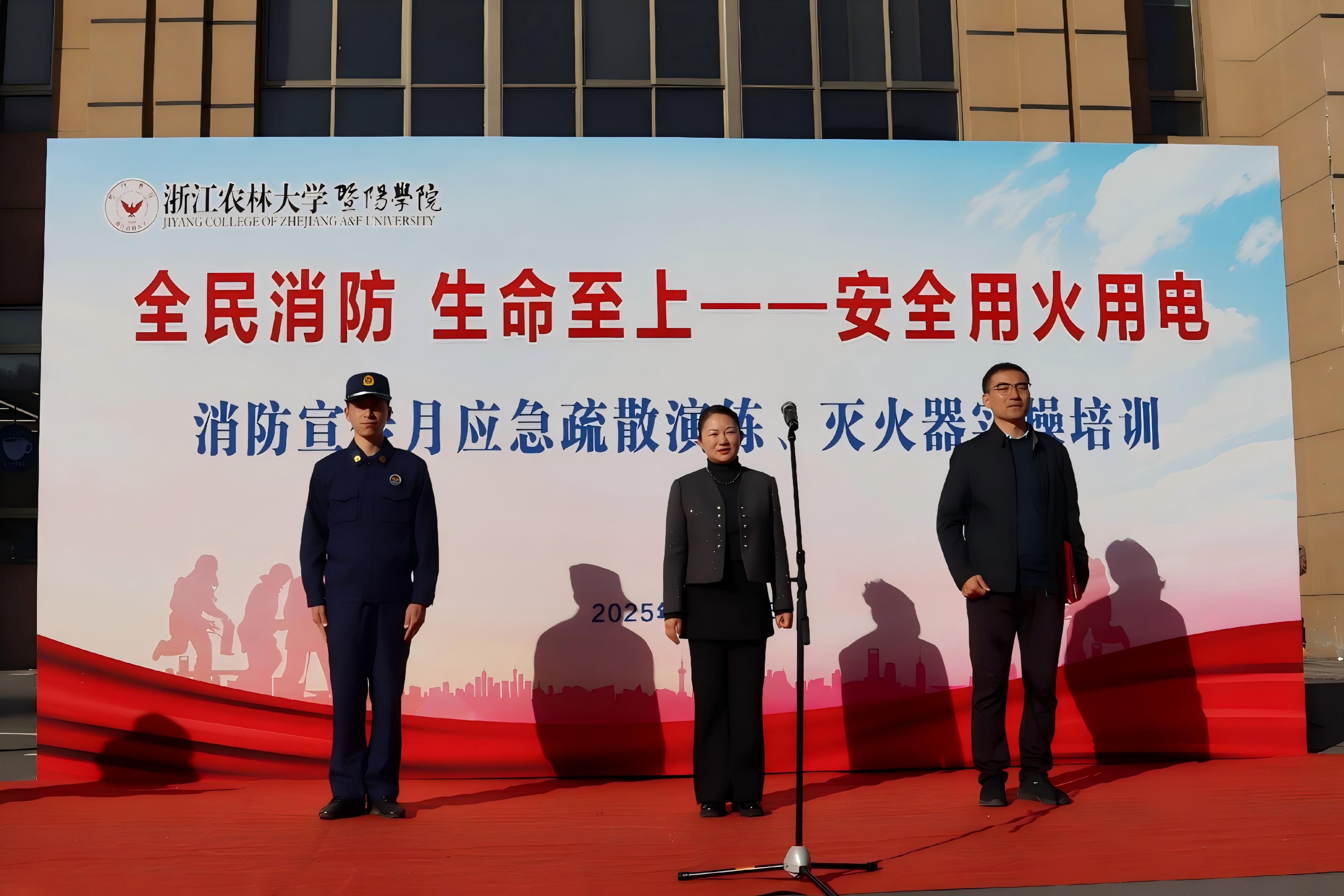 11月26日下午,学院在第二食堂前广场举行2025年消防应急疏散演练、灭火器实操培训。学院党委书记洪昀、副书记张付安,学院综治委工作组成员,各二级学院党总支书记,卫生所医护人员、后勤中心诸暨服务部员工代表、学院微型消防站队员以及诸暨市消防救援大队的官兵代表参加活动。